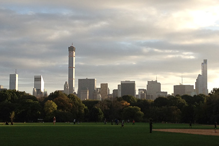 セントラルパークをスケート、いつものベンチにて小休止。目の前にひろがっているシルバーの景観に眼を奪われた。 シルバー・ブルーの空にシルバーのビル群。好みの色調にうっとり。